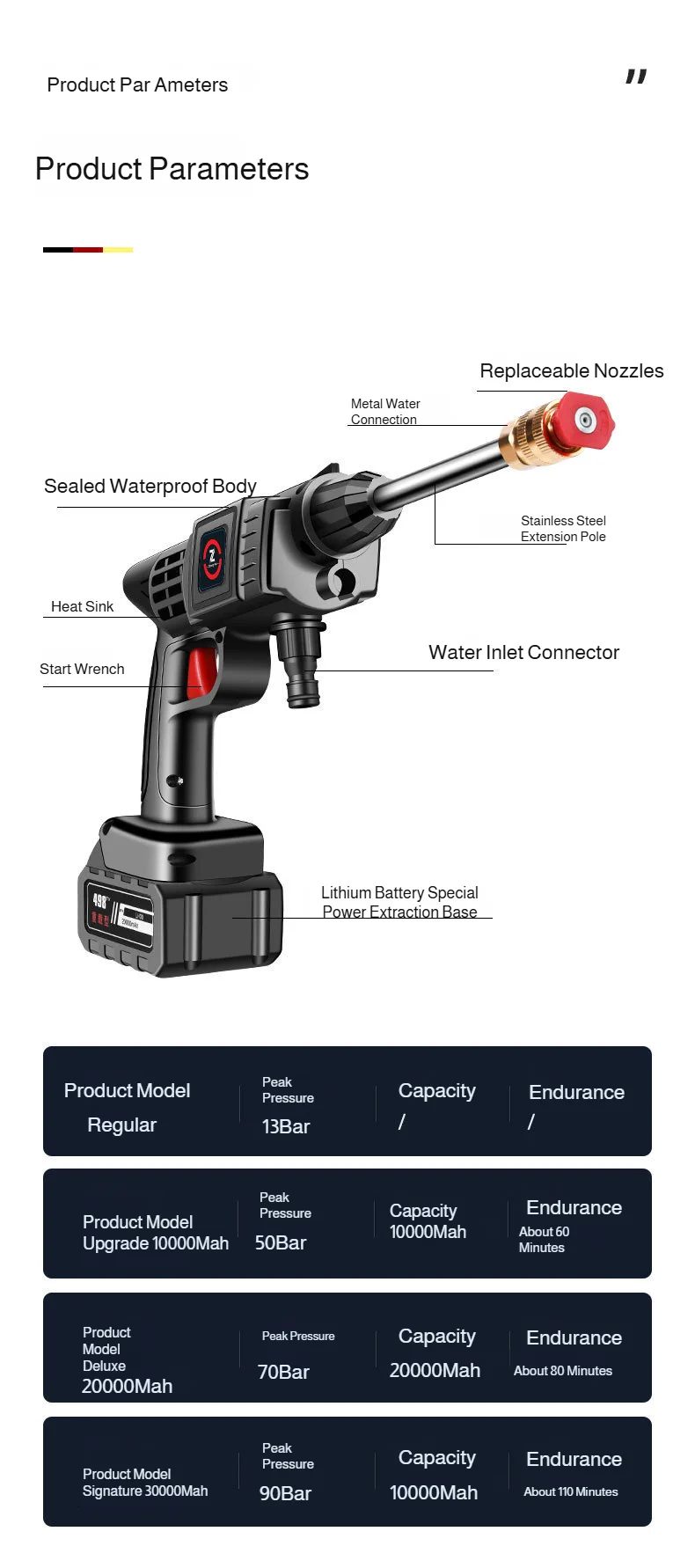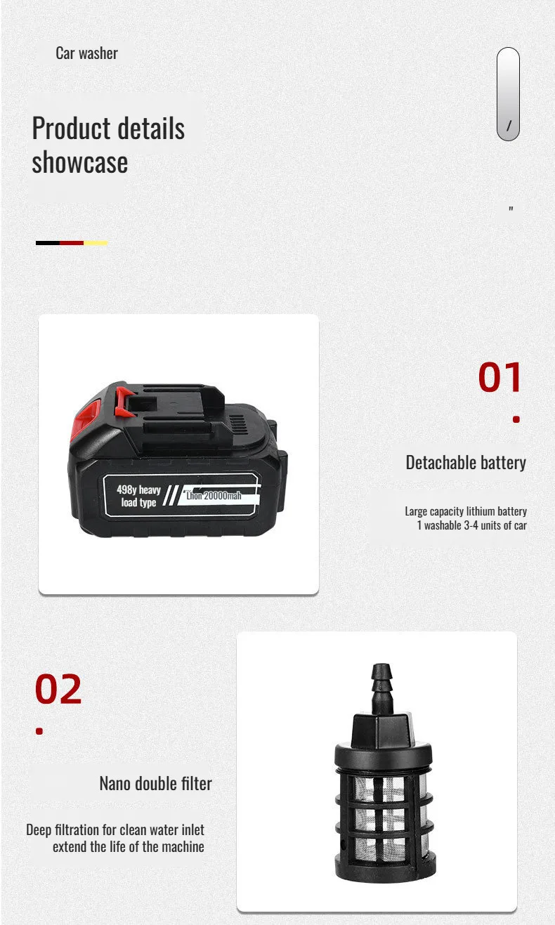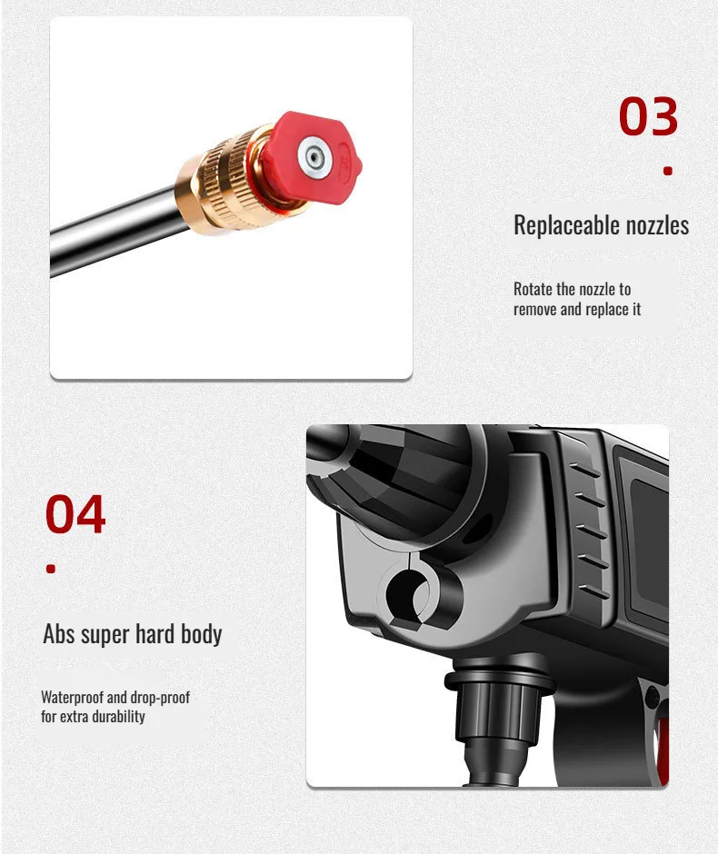 Lightweight and easy to use, this pressurized water gun offers high-efficiency cleaning without the need for complex setup or additional water pipes. Its ergonomic design ensures comfortable handling, making it a perfect tool for car washes, outdoor cleaning, and other household tasks.