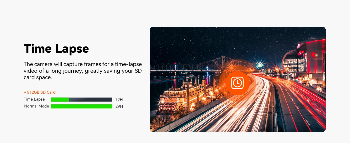 [More Reliable and Safer] The built-in supercapacitor endures extreme temperatures from -4°F to 158°F, improving reliability and extending the camera’s lifespan. Loop recording automatically overwrites the oldest footage when the SD card is full, while the G-sensor locks and saves videos during sudden shocks or collisions. Time-lapse recording conserves memory card space. The camera comes with an extendable 18-month warranty, 24-hour email customer support, and a 100% satisfaction guarantee.