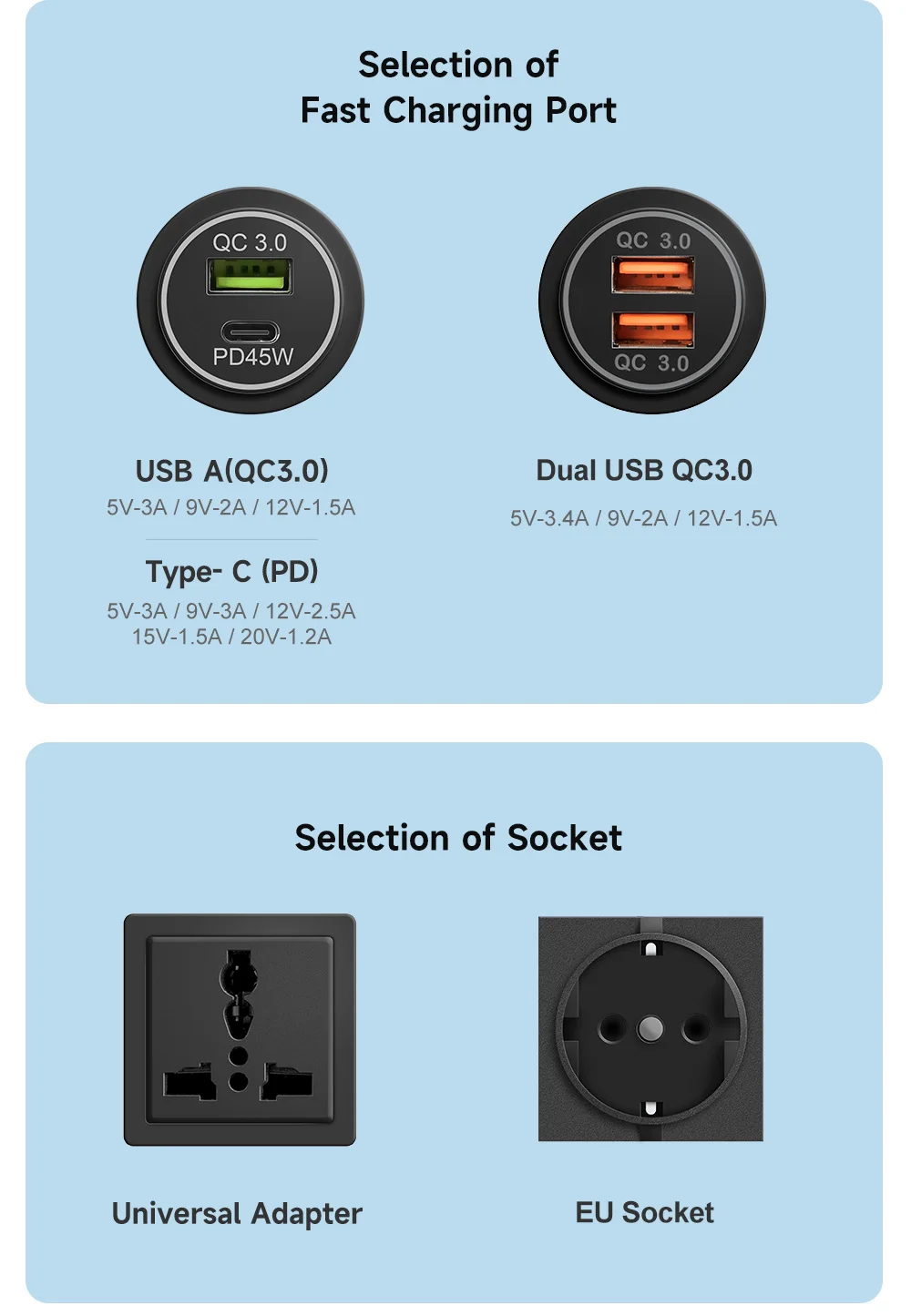 Compact yet durable, this charger features universal compatibility with 12V and 24V systems, making it perfect for long trips or daily commutes. Its intelligent design offers a safe and convenient solution for powering multiple devices simultaneously, combining functionality with modern style for every travel adventure.