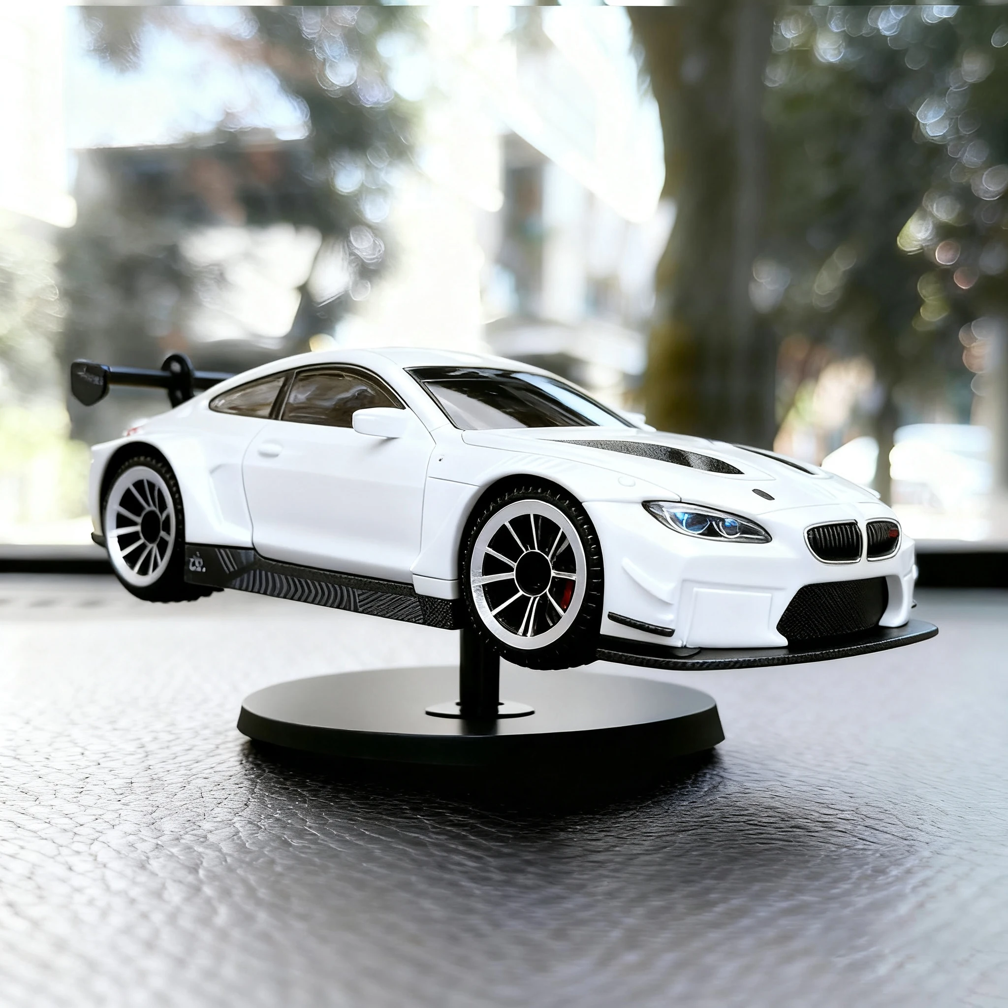 Add a fun and dynamic touch to your car interior with this BMW M4 GT3 Drift Rotating Ornament. Designed as a miniature car model, it spins and drifts on the center console, providing an entertaining visual display for both adults and children. Its lightweight plastic construction ensures safe use while maintaining durability.